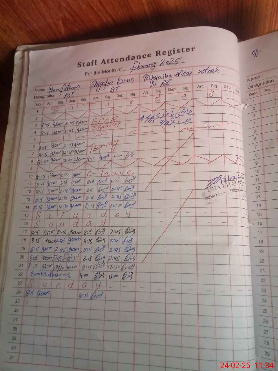| CNIC | Full Name | Designation | R/C | Absence During Last Calender Month |