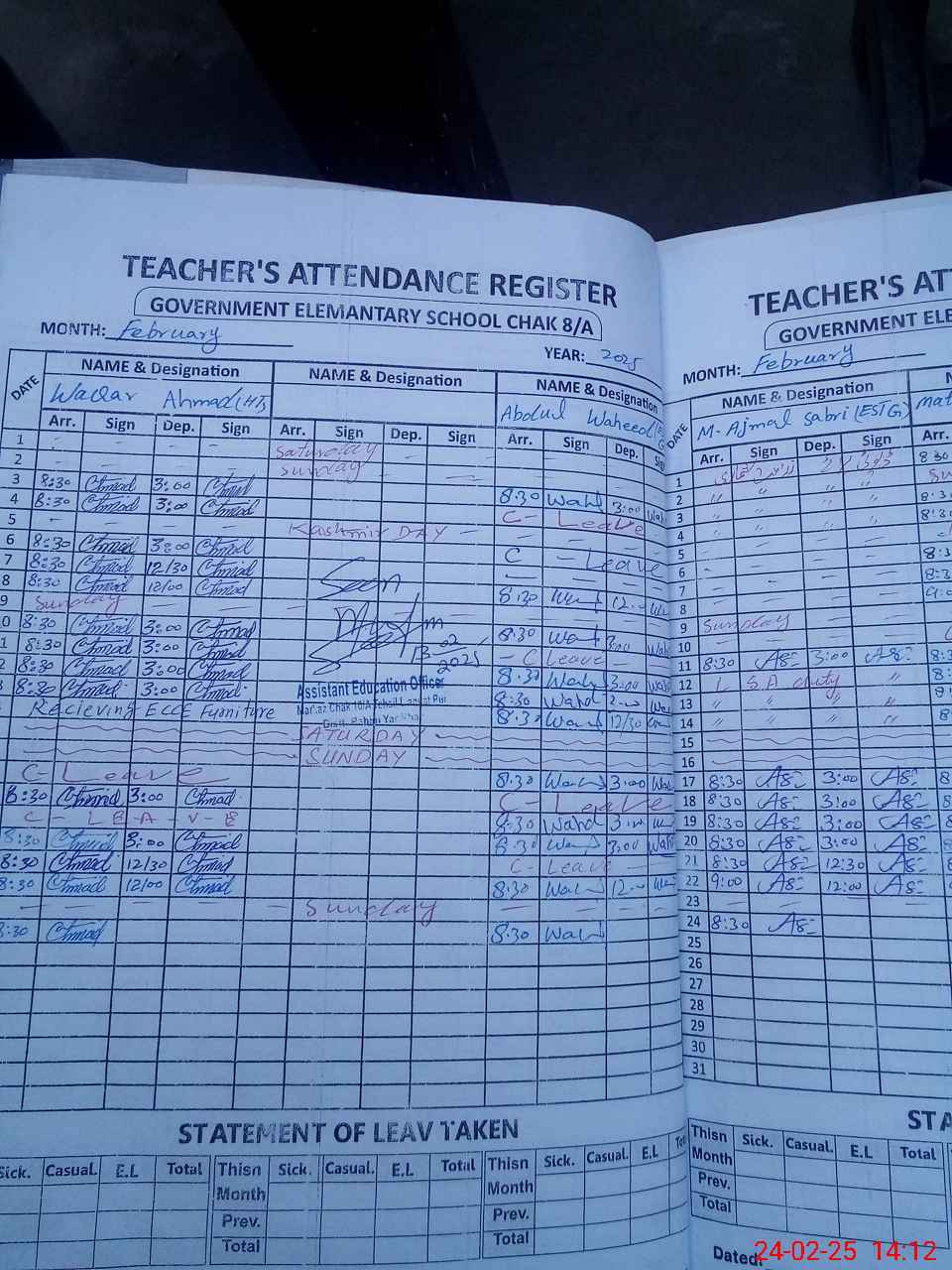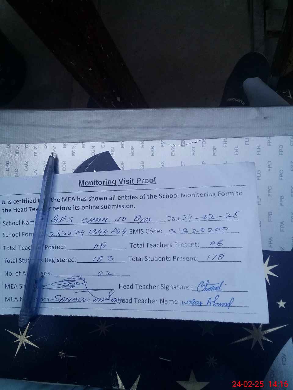 | EMIS Code: 31320200 | Name of School: GES CHAK 8/A | |||