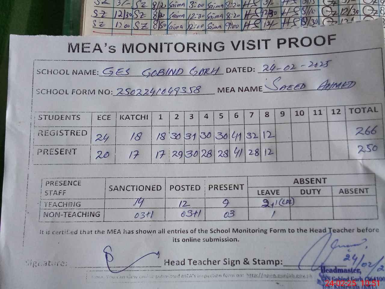 | EMIS Code: 36410081 | Name of School: GES GOBIND GARH, ABDUL HAKIM | |||