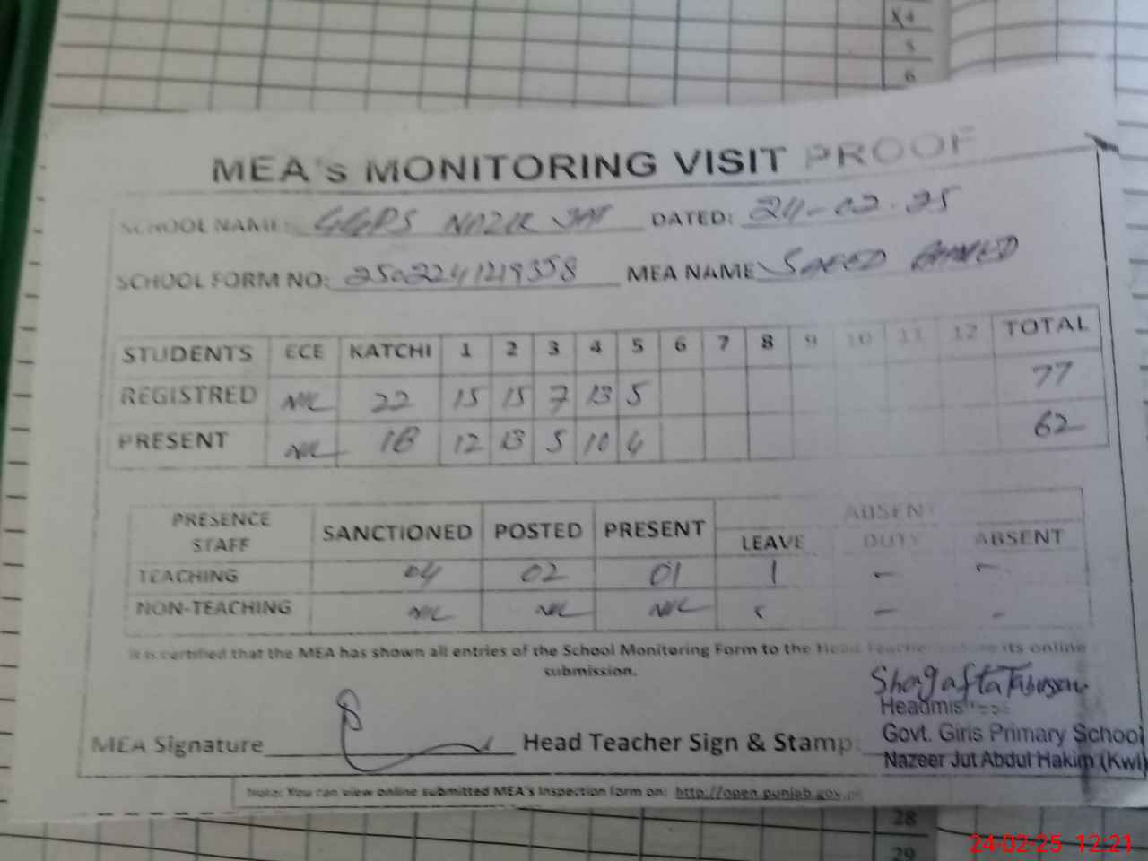 | EMIS Code: 36410447 | Name of School: GGPS NAZIR JAT, ABDUL HAKIM | |||