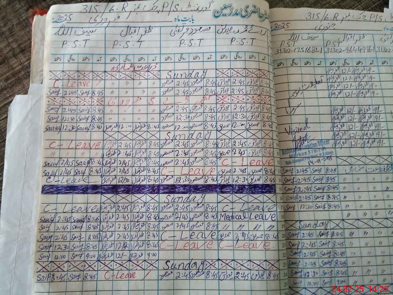 | CNIC | Full Name | Designation | R/C | Absence During Last Calender Month |