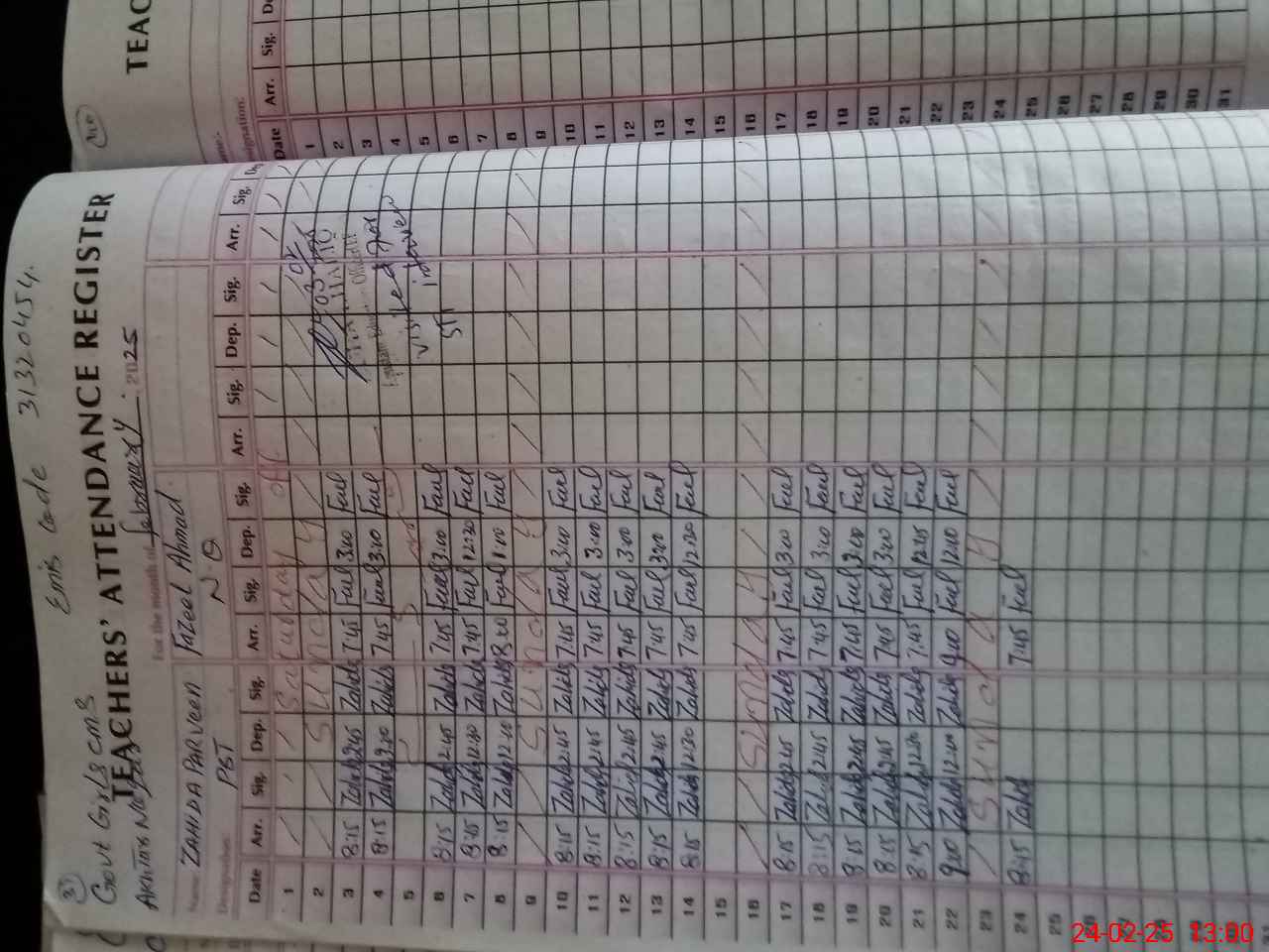 | Name: Za**** Pe**** Designation: (School Headmaster's/Headmistress's) PST Phone/Cell Number: 03**** |