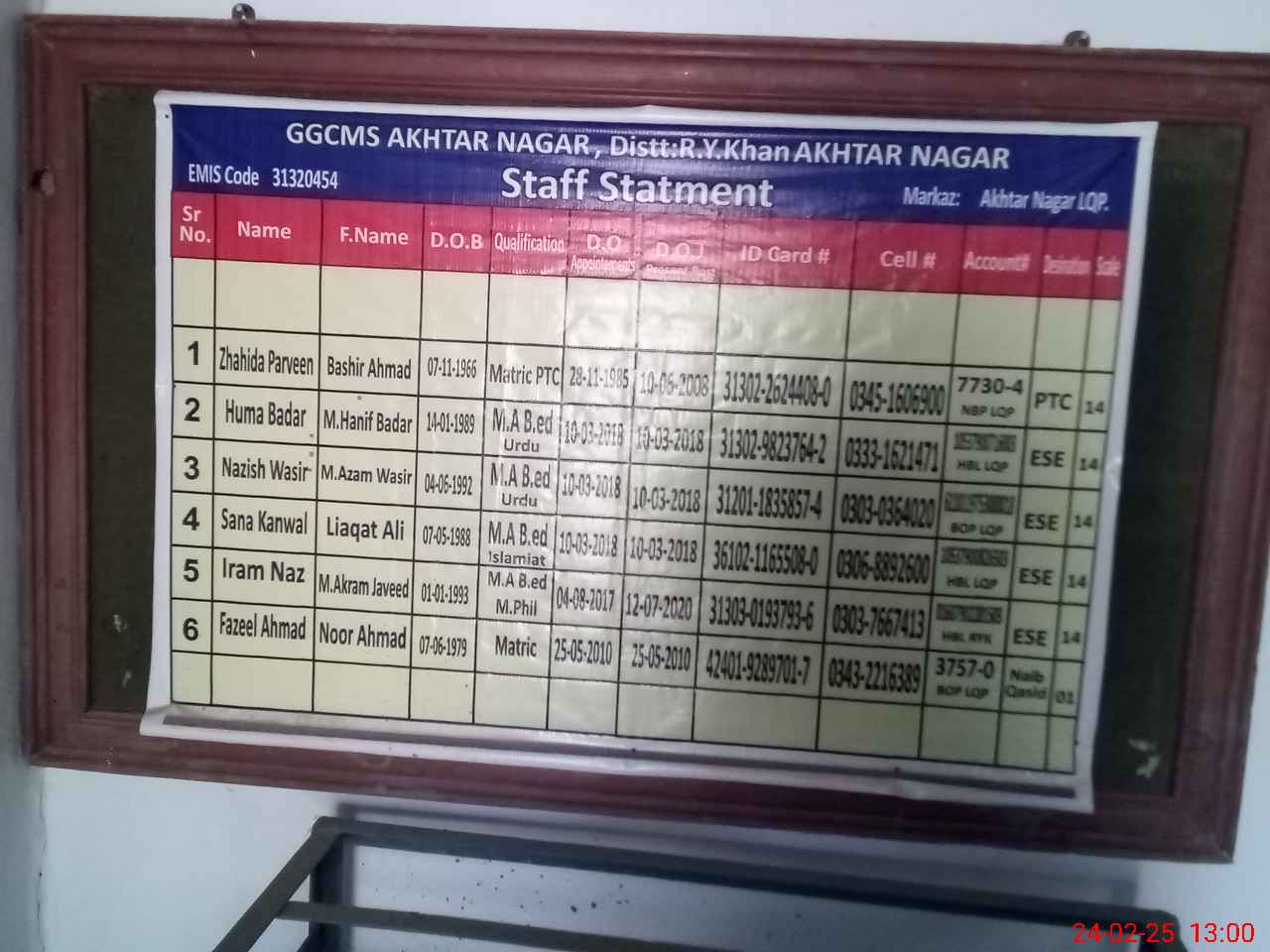 | EMIS Code: 31320454 | Name of School: GGCMS AKHTAR NAGAR | |||