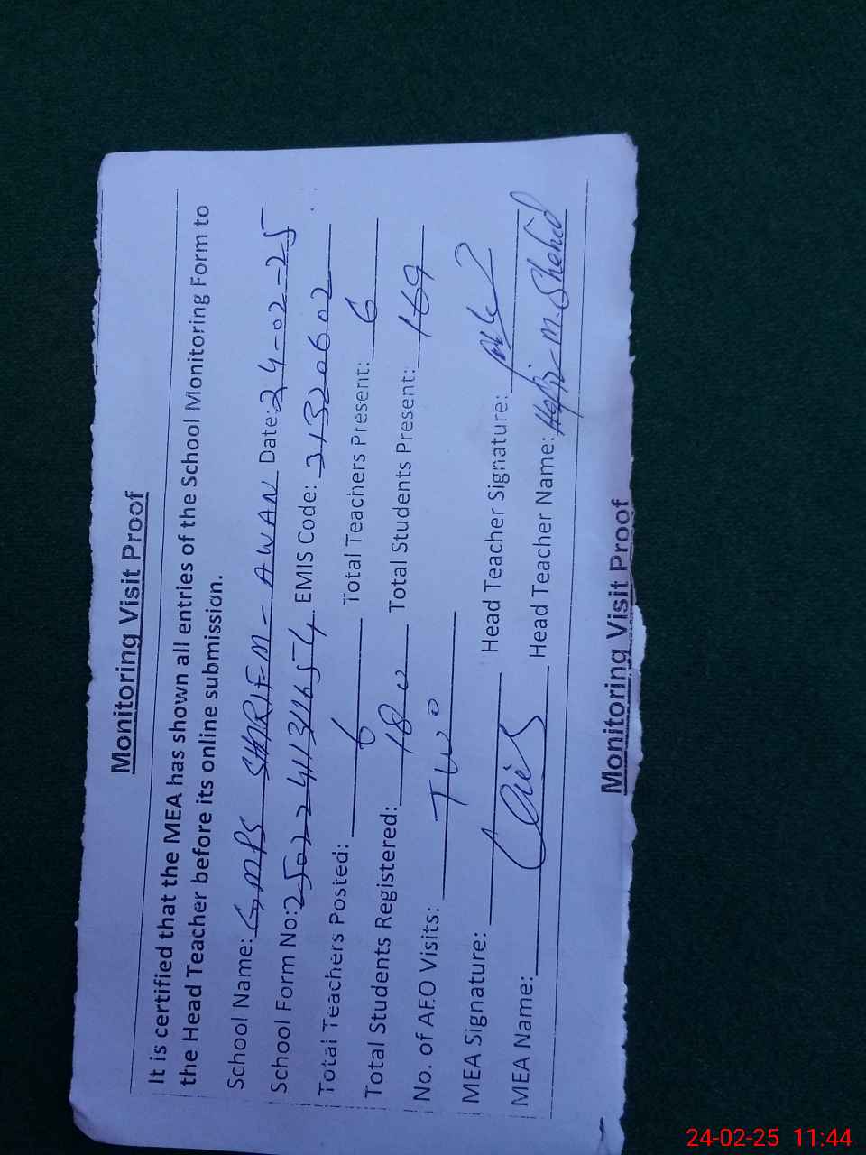 | EMIS Code: 31320602 | Name of School: GMPS SHARIF MUHAMMAD AWAN | |||