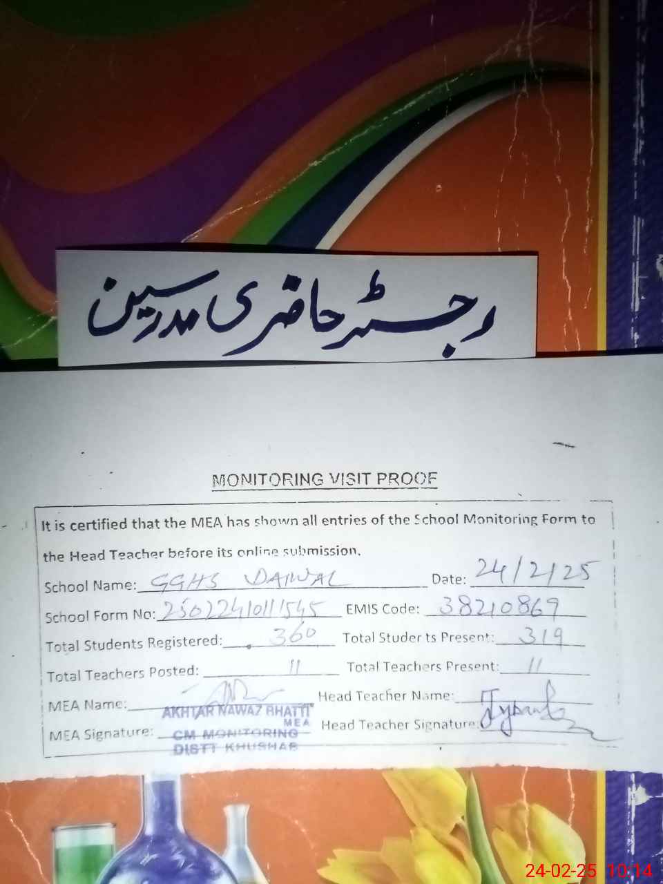 | EMIS Code: 38210869 | Name of School: GGHS DAIWAL | |||