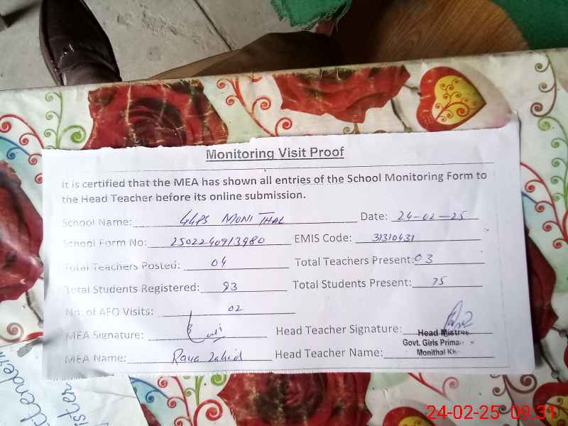 | EMIS Code: 31310431 | Name of School: GGPS MONI THAL | |||