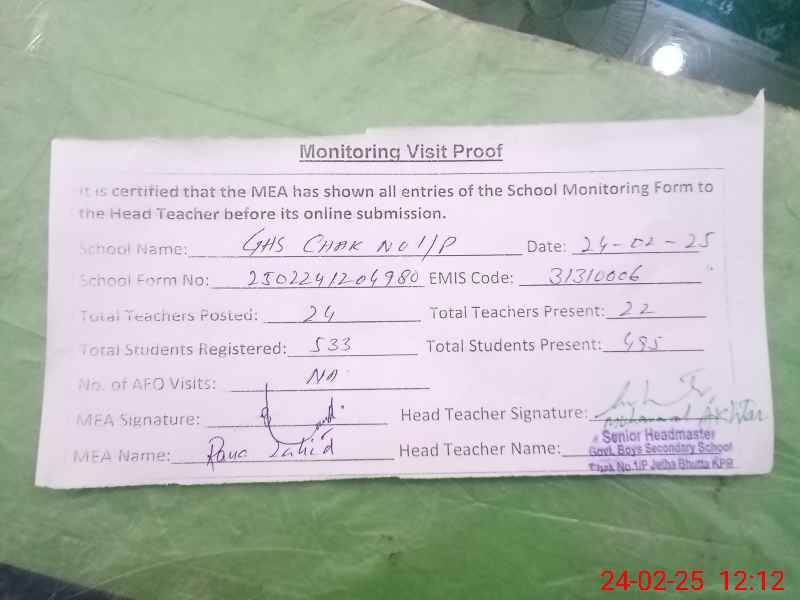 | EMIS Code: 31310006 | Name of School: GHS CHAK 1/P JETHA BHUTTA | |||