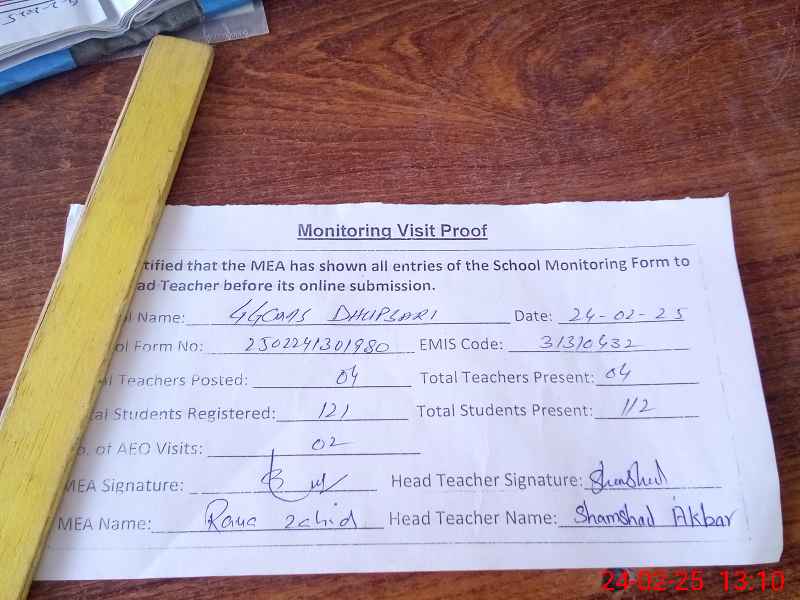 | EMIS Code: 31310432 | Name of School: GGCMS DHUPSARI | |||