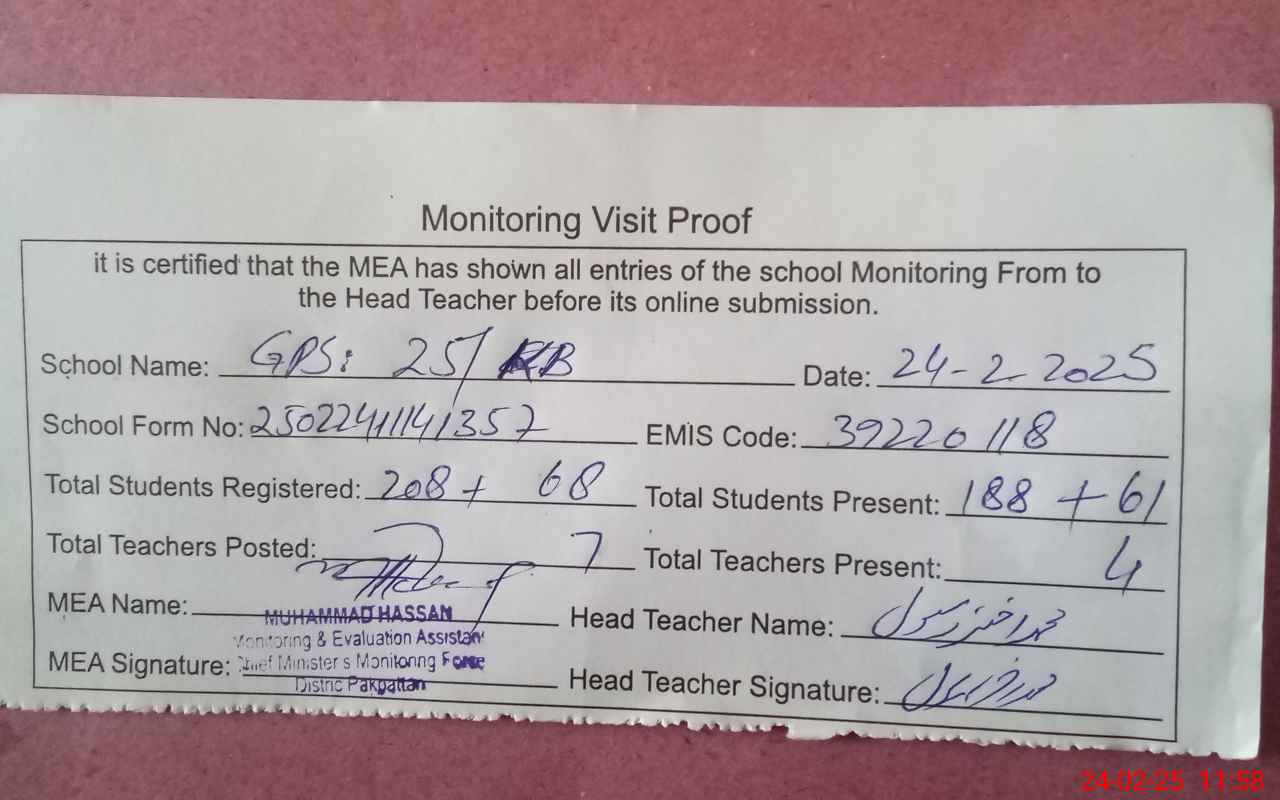 | EMIS Code: 39220118 | Name of School: GPS 25 KB | |||