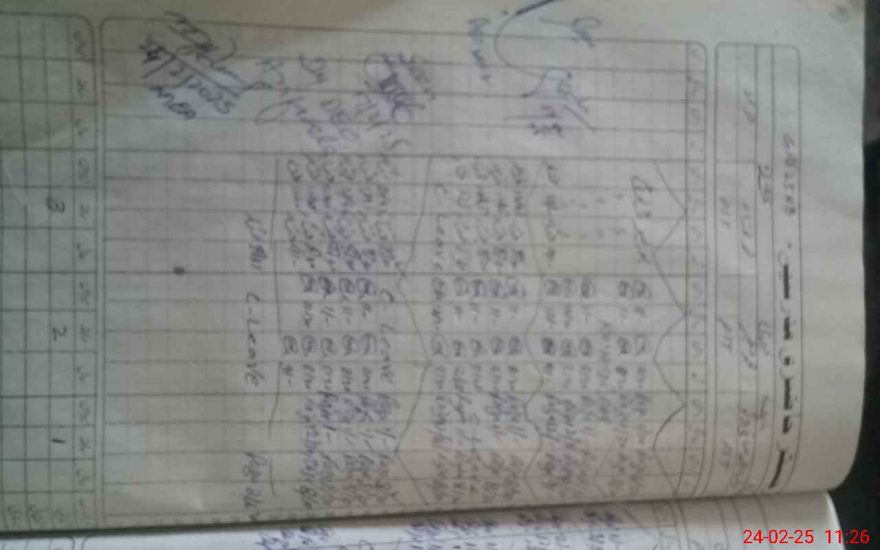 | CNIC | Full Name | Designation | R/C | Absence During Last Calender Month |