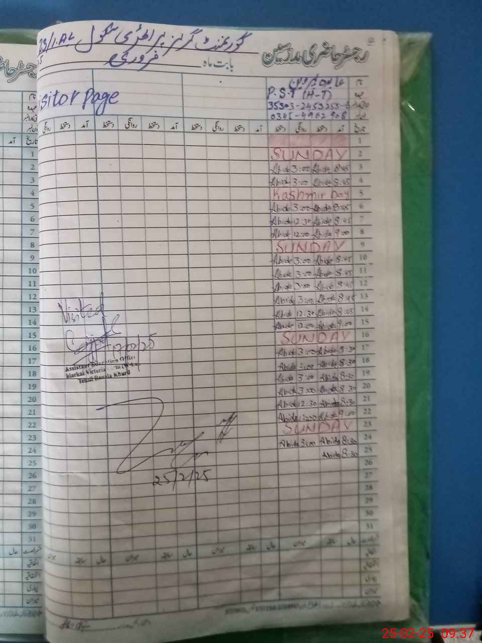 | Name: Ab**** Pa**** Designation: (School Headmaster's/Headmistress's) PST H.T Phone/Cell Number: 03**** |
