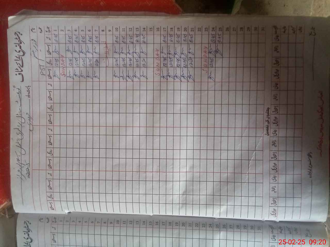 | CNIC | Full Name | Designation | R/C | Absence During Last Calender Month |