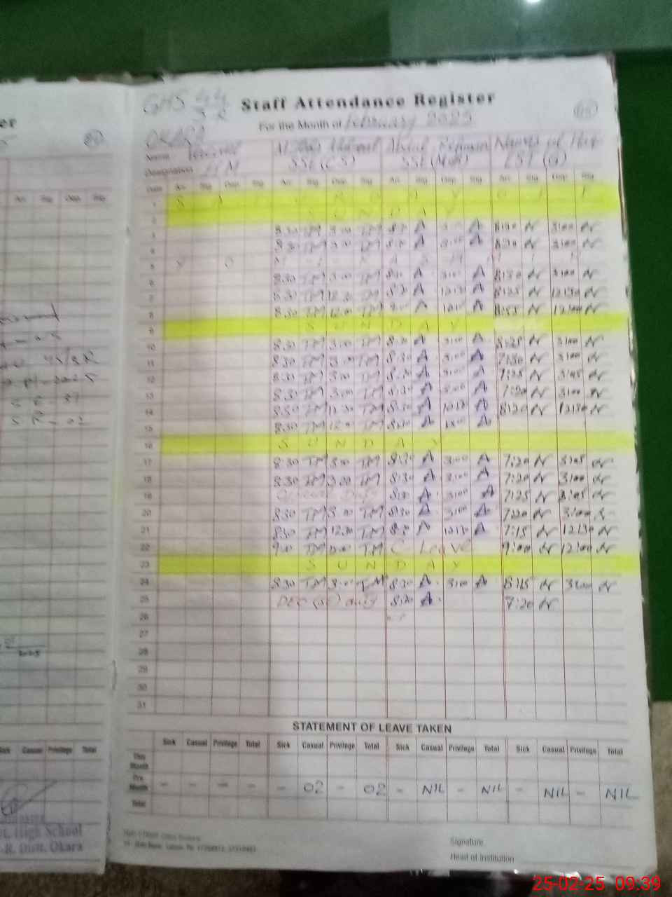 | CNIC | Full Name | Designation | R/C | Absence During Last Calender Month |