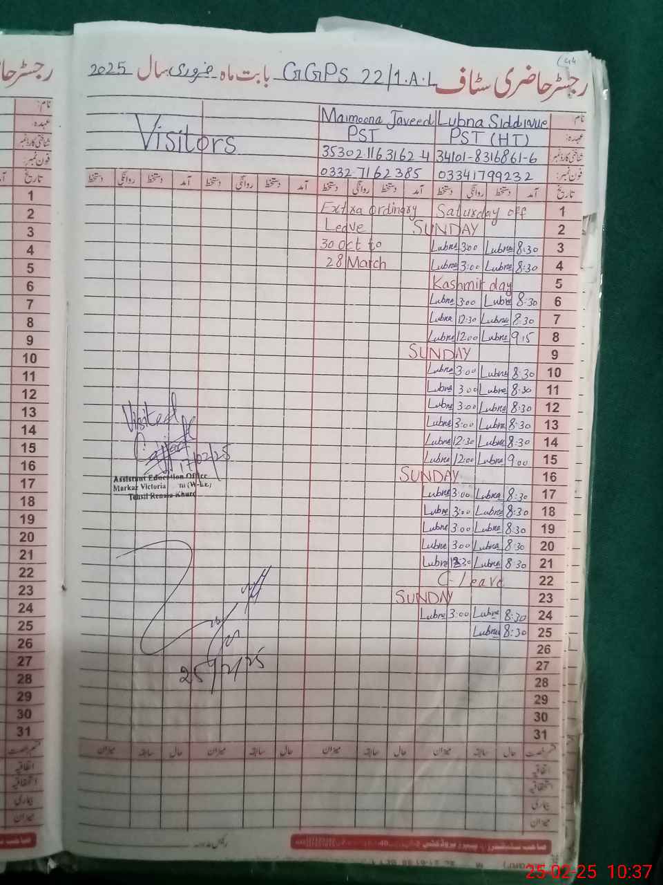 | Name: LU**** SI**** Designation: (School Headmaster's/Headmistress's) PST Phone/Cell Number: 03**** |