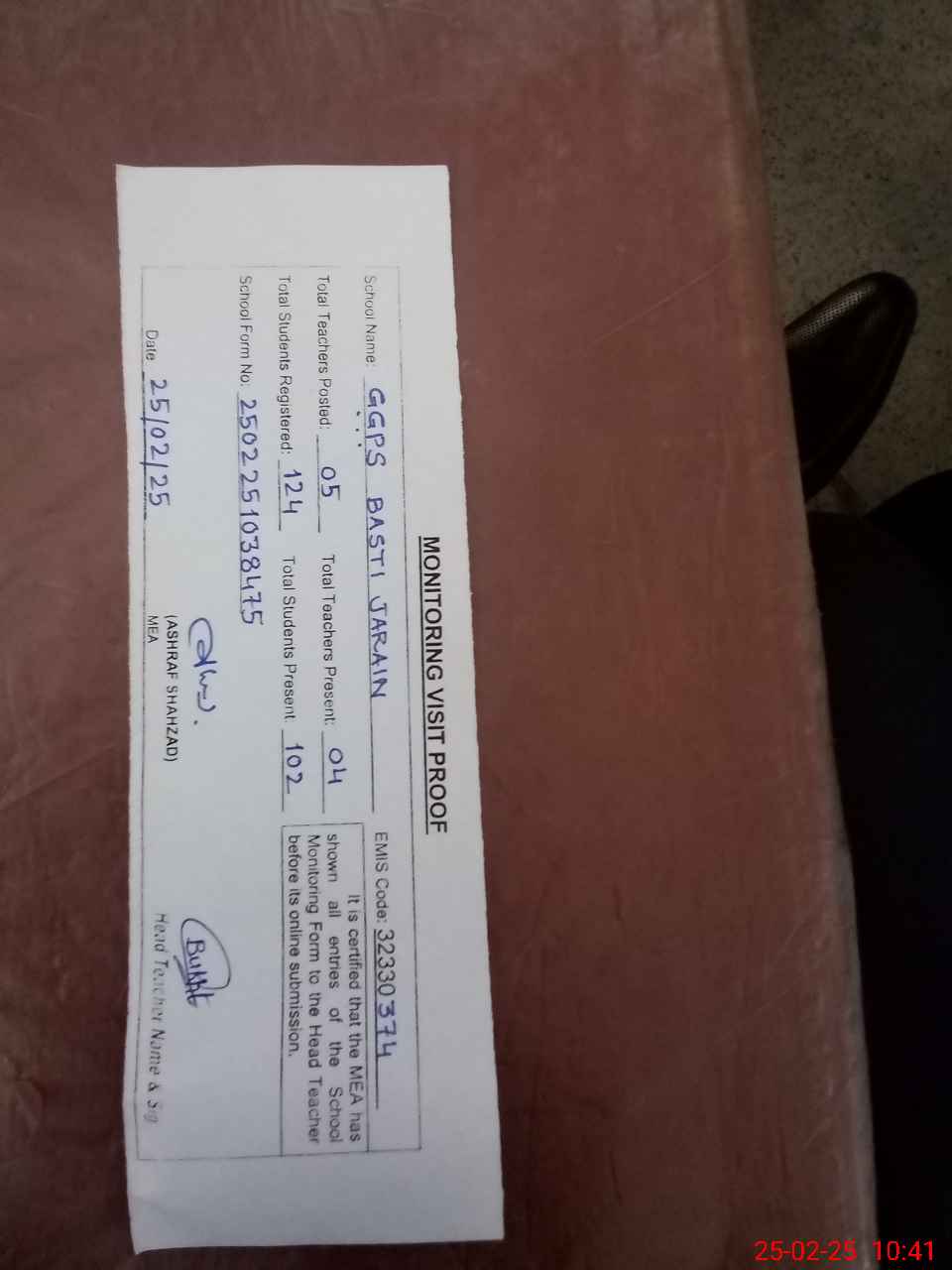 | Monitoring Date: 25-02-2025 | Start Time: 25-02-2025 10:03 AM | End Time: 25-02-2025 10:45 AM | Name of MEA: Mu**** As**** Sh**** | |
