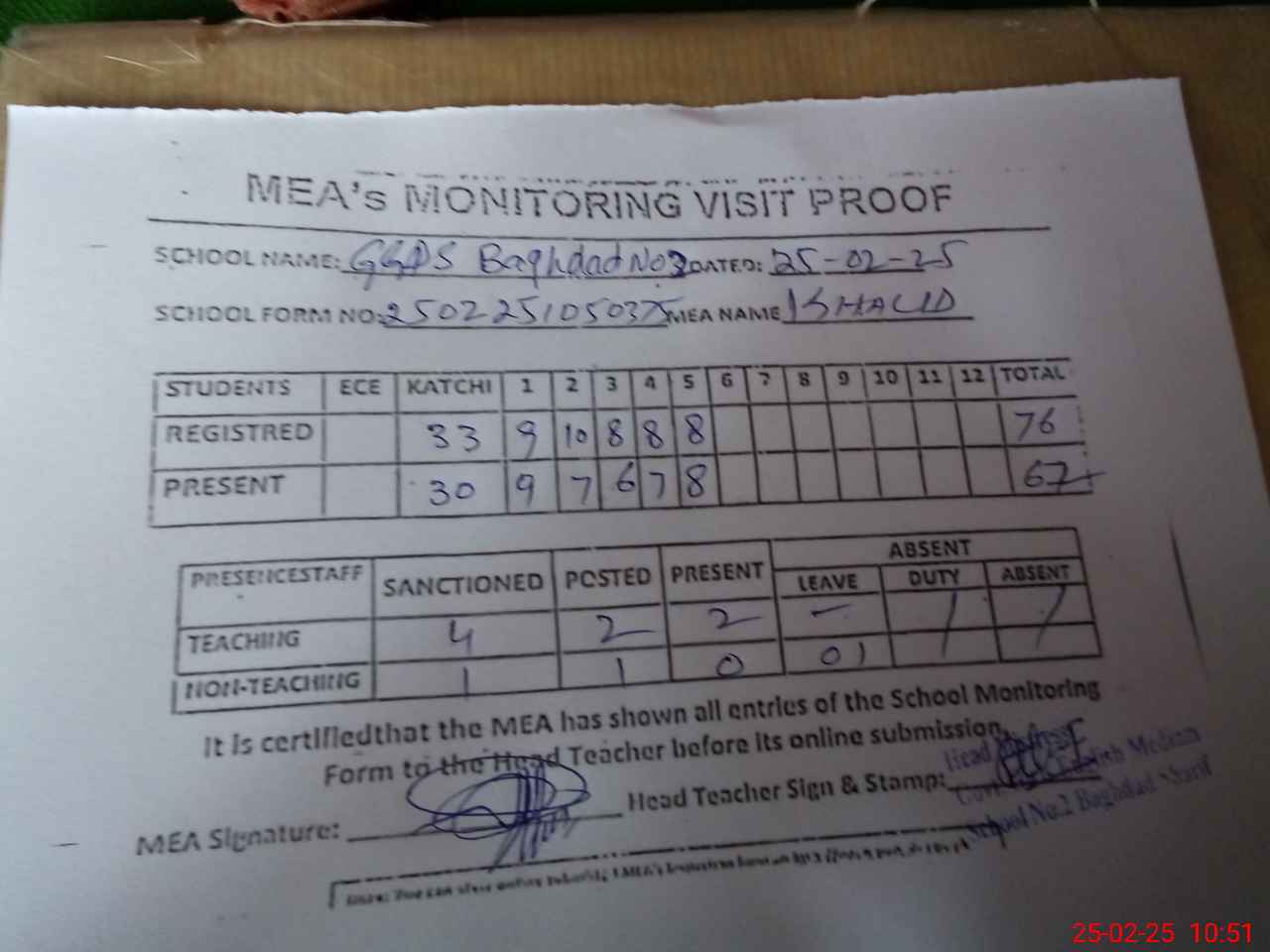 | EMIS Code: 36430387 | Name of School: GGPS BAGHDAD NO.2 TULAMBA | |||