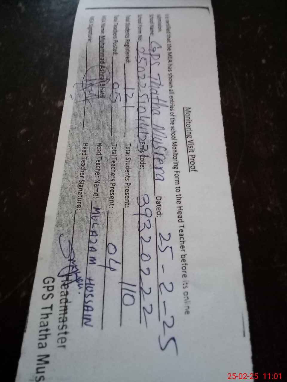 | EMIS Code: 39320222 | Name of School: GPS THATHA MUSRAIRA | |||