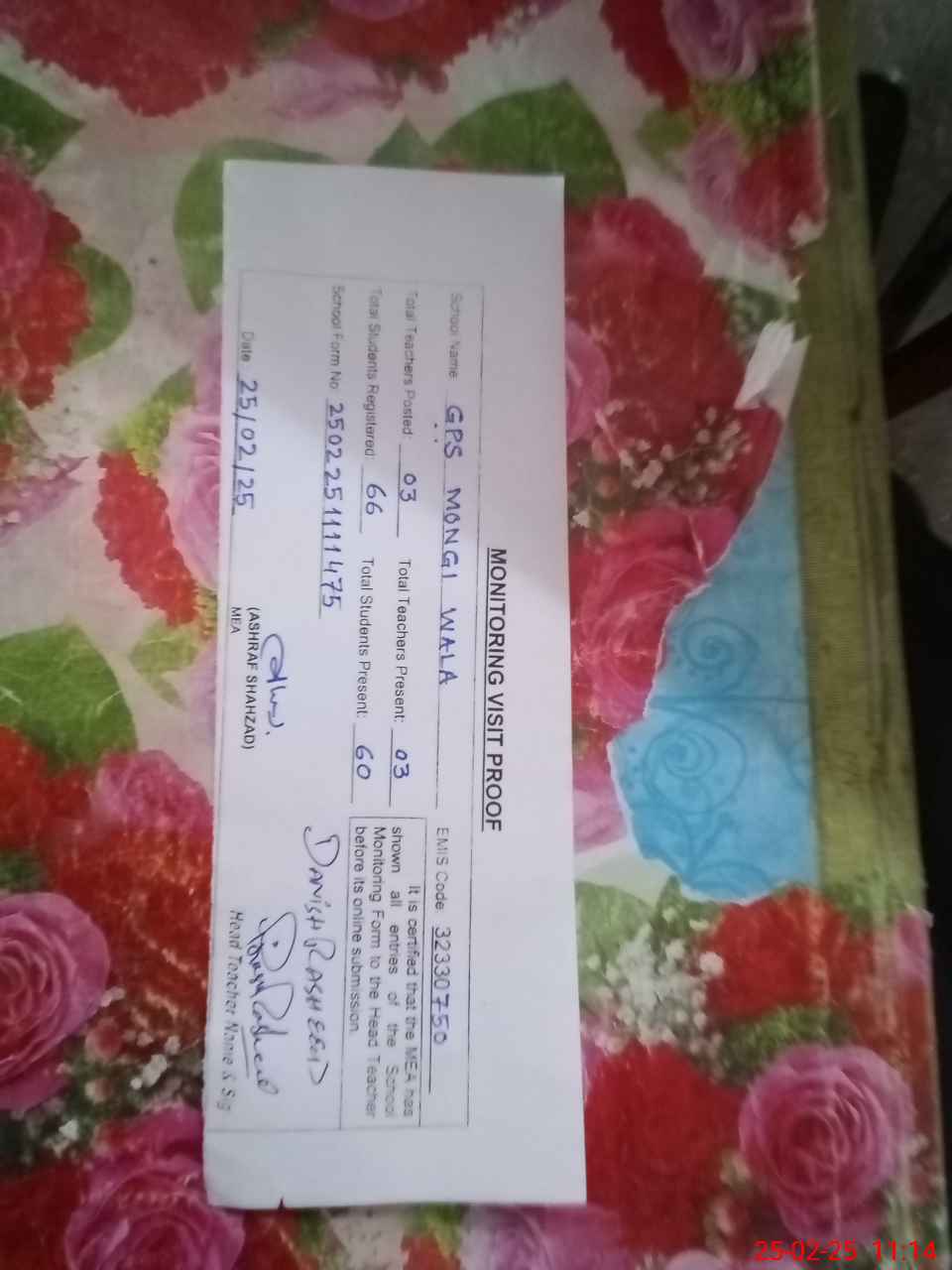 | EMIS Code: 32330750 | Name of School: GPS MONGI WALA | |||