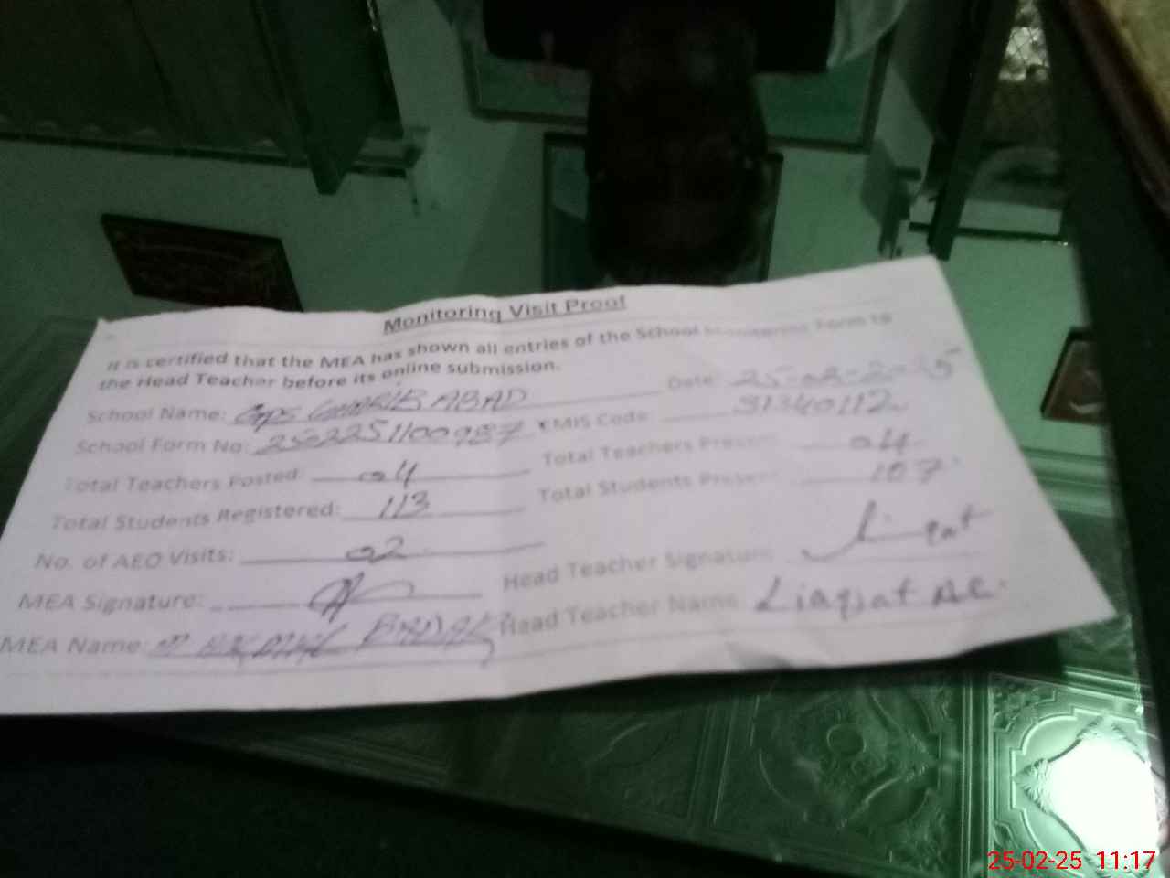 | EMIS Code: 31340112 | Name of School: GPS GHARIB ABAD | |||