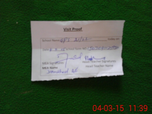 | Attendance Register | Head Teacher | MEA with School | Visit Proof |