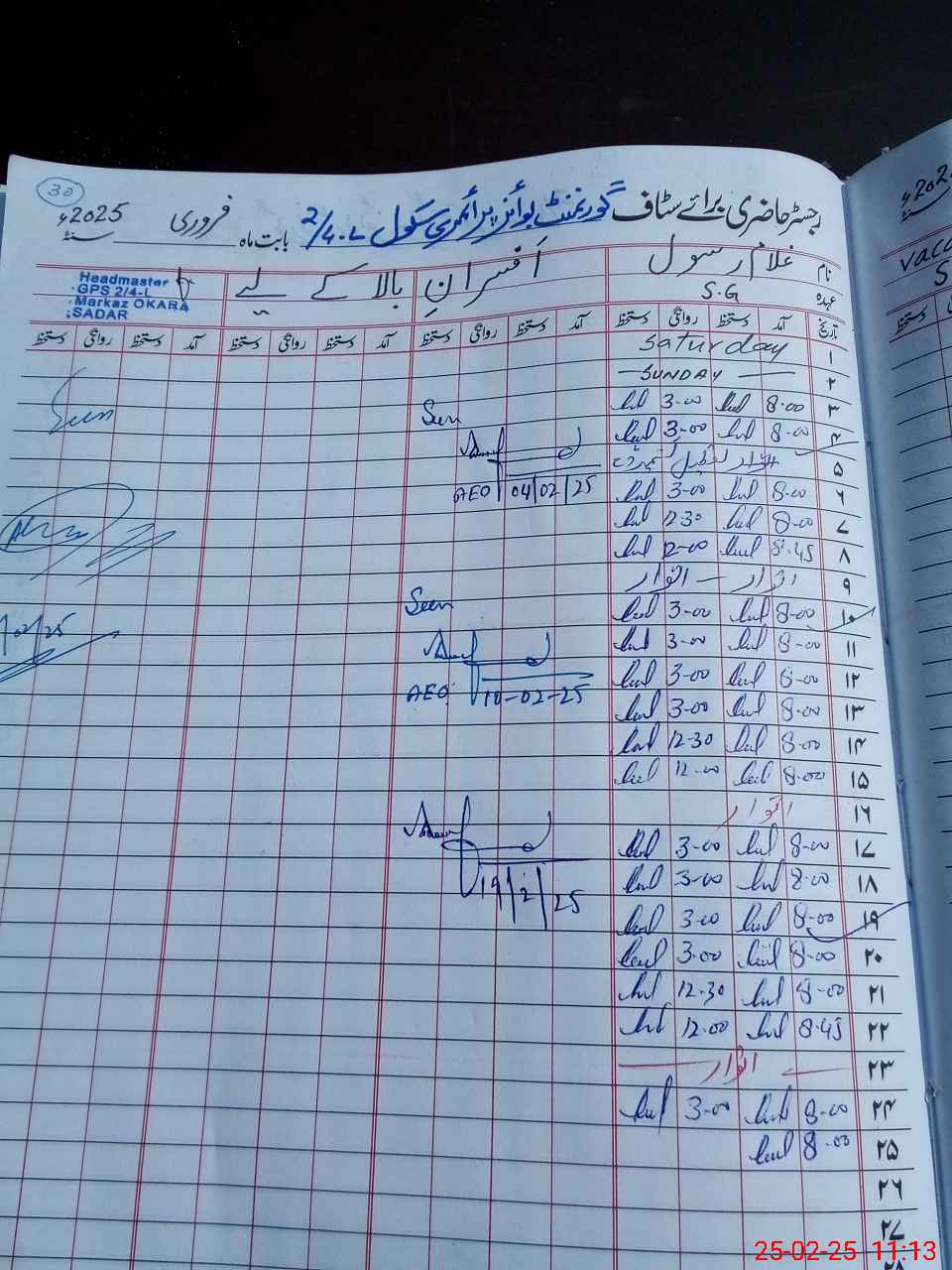| District: OKARA | Tehsil: OKARA | Markaz: OKARA SADAR - MALE | Level: Primary | |