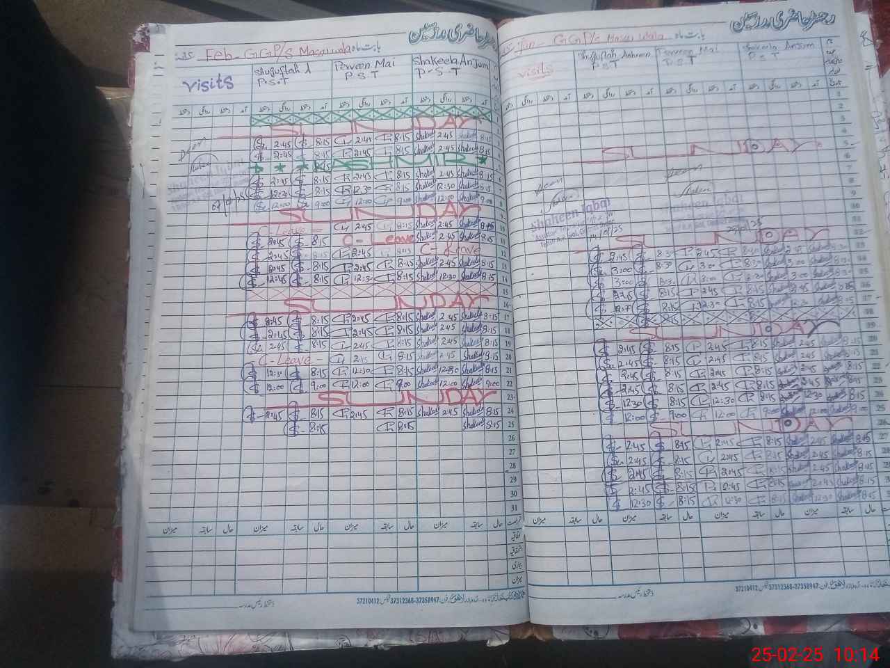 | CNIC | Full Name | Designation | R/C | Absence During Last Calender Month |
