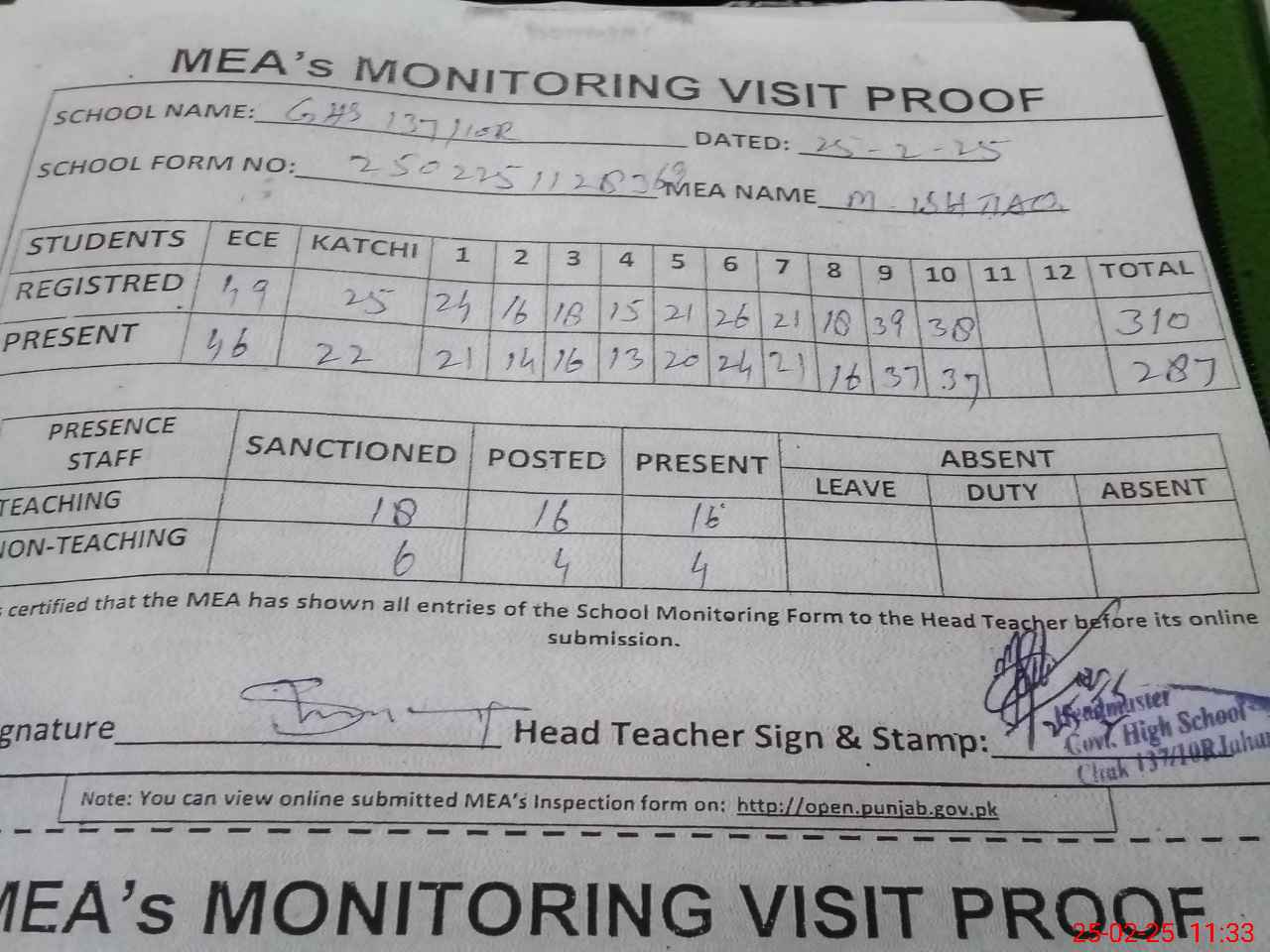 | EMIS Code: 36440035 | Name of School: GHS 137/10-R, JAHANIAN | |||