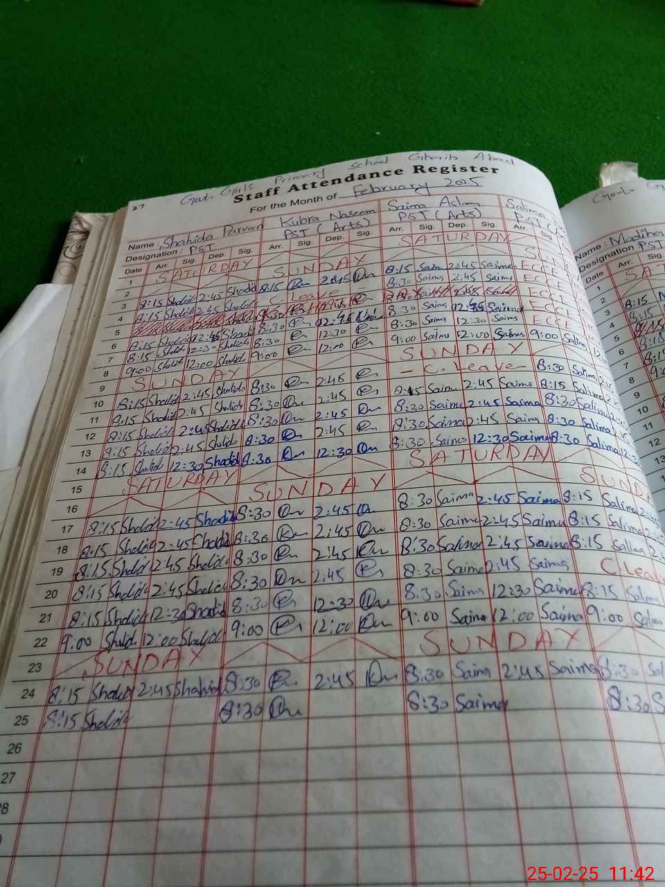 | Leave | Duty | Absent | Maternity | Medical | Ex- Pak |