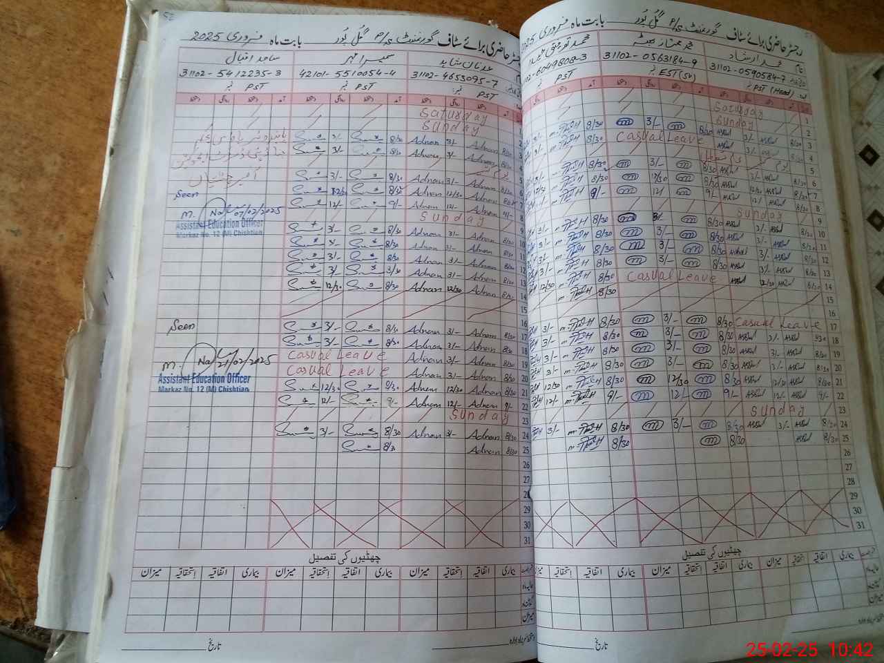 | CNIC | Full Name | Designation | R/C | Absence during last cal. month |