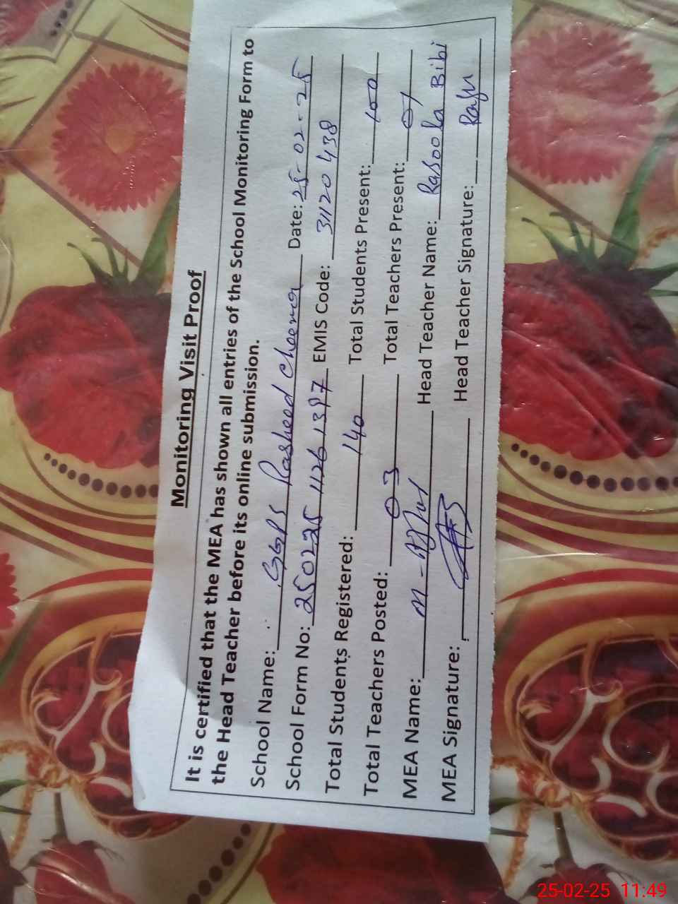 | EMIS Code: 31120438 | Name of School: GGPS RASHID CHEEMA | |||