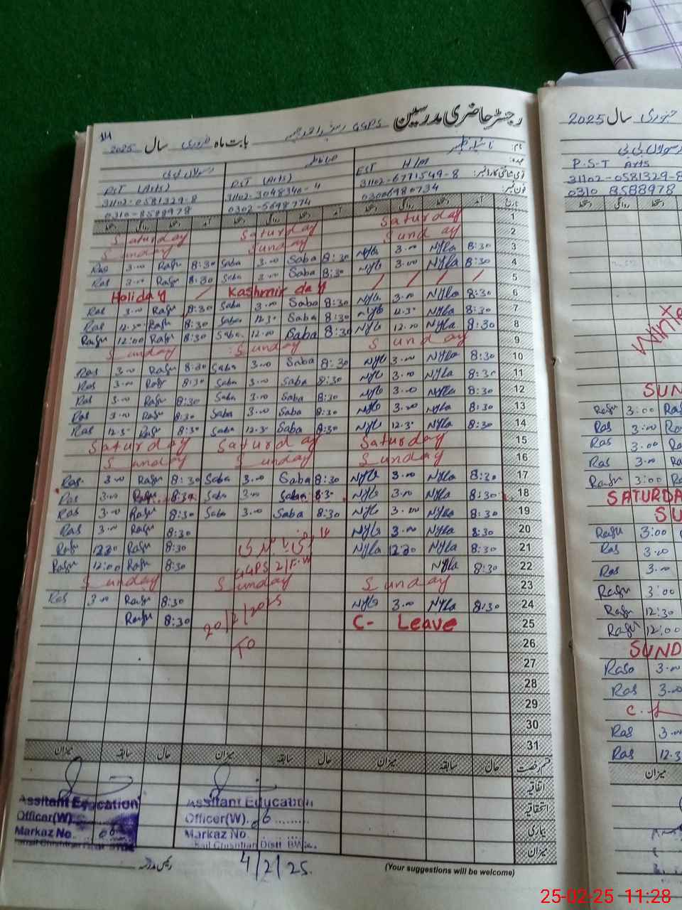 | 31**** | Ny**** Za**** | 3 | 1 | 0 | 0 | 0 | 0 | 0 | 0 | 0 | 0 | 0 | Absent (Un-Authorized) |