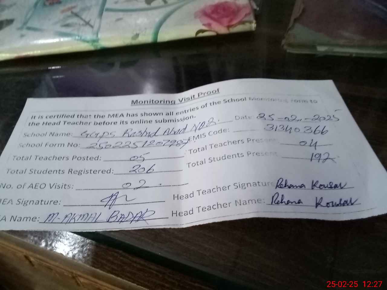 | EMIS Code: 31340366 | Name of School: GGPS RASHID ABAD NO. 3 MOHALLAH RASHID ABAD | |||