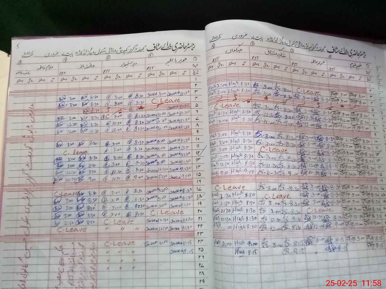 | CNIC | Full Name | Designation | R/C | Absence During Last Calender Month |