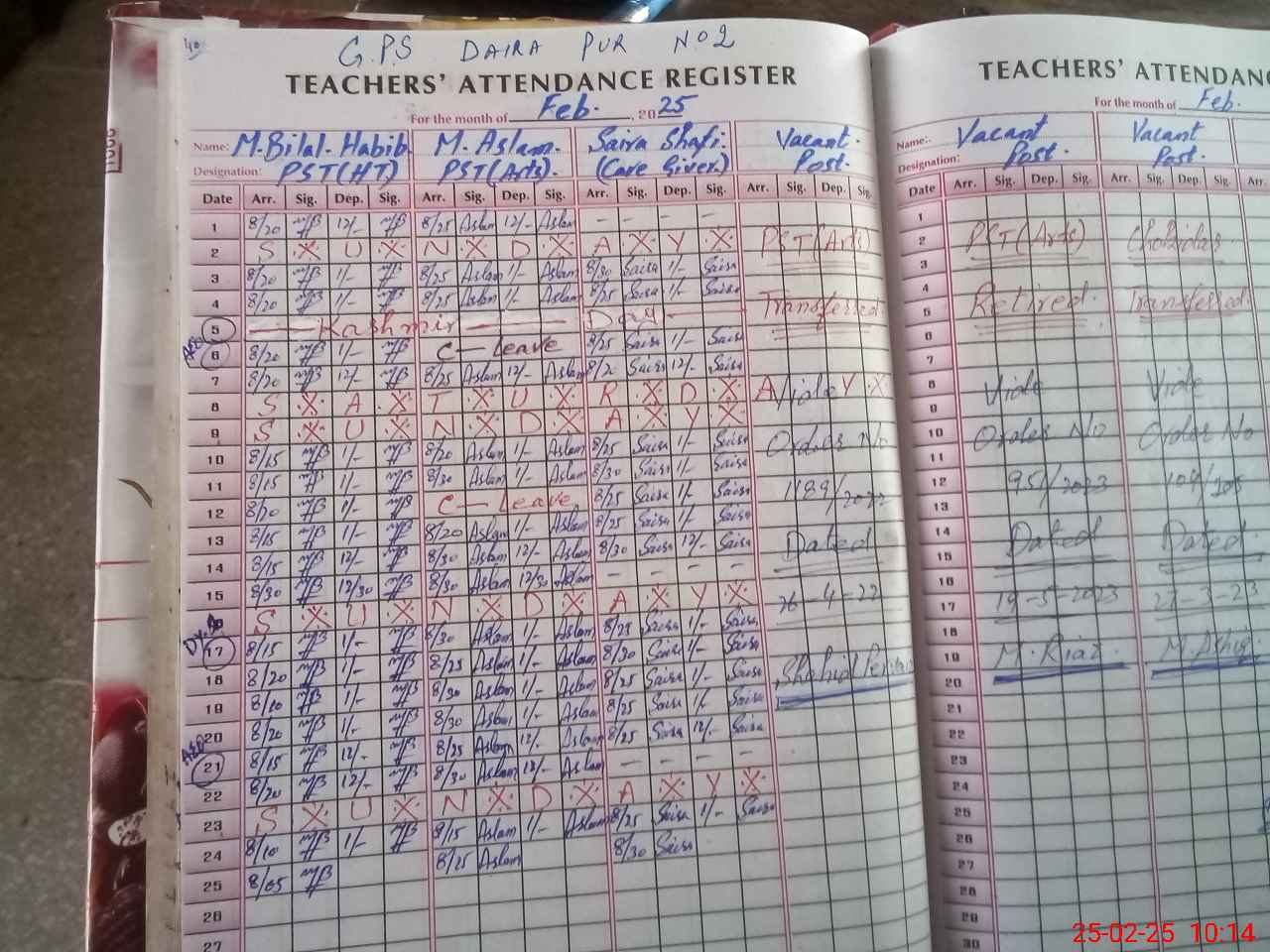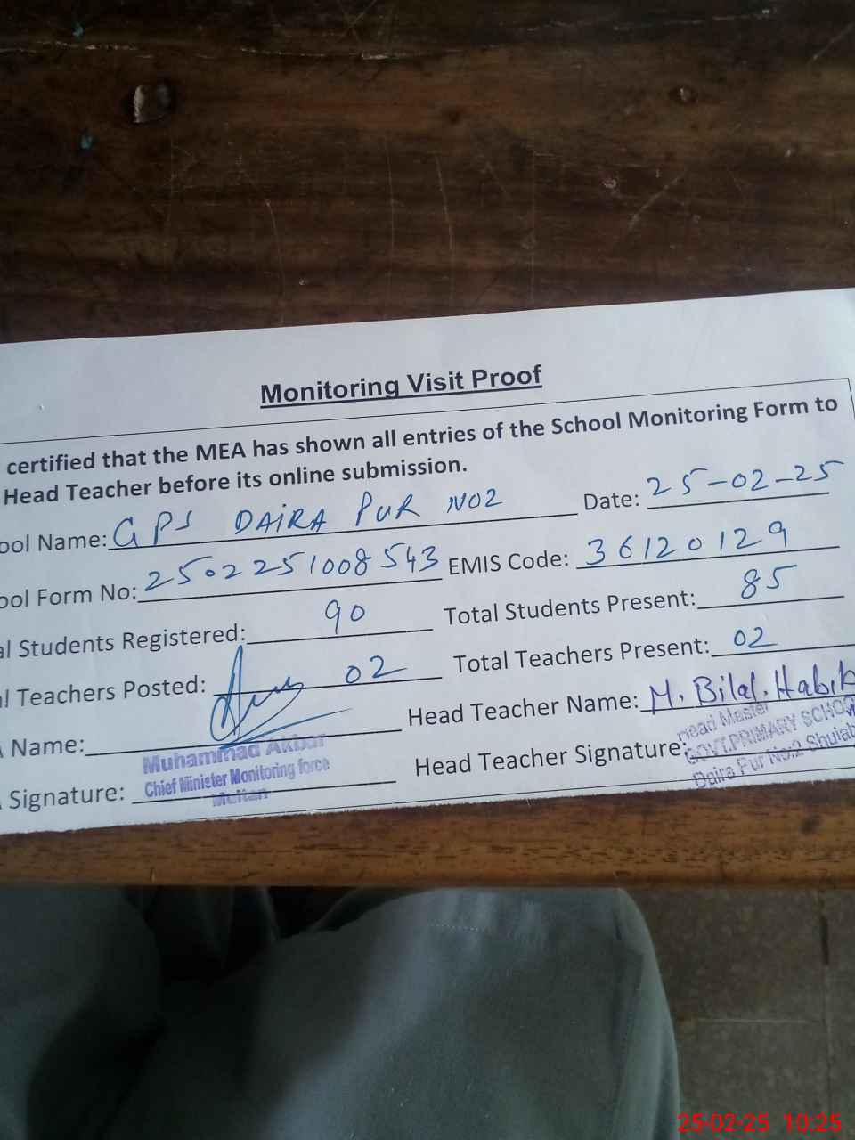 | EMIS Code: 36120129 | Name of School: GPS DAIRA PUR NO. 2 SHUJA ABAD | |||