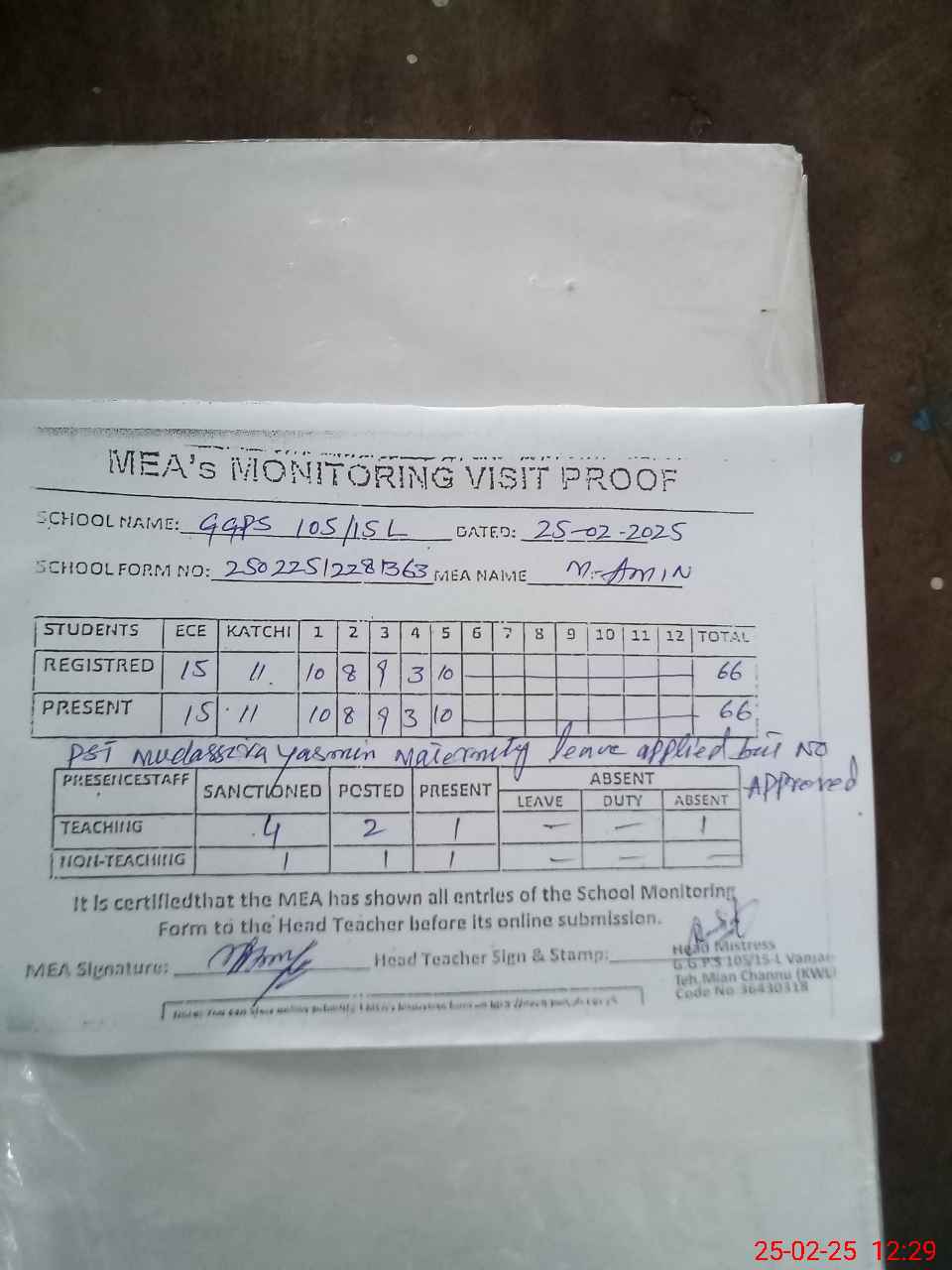 | EMIS Code: 36430318 | Name of School: GGPS 105/15-L, MIAN CHANNU | |||