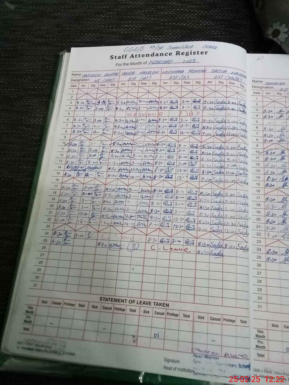 | CNIC | Full Name | Designation | R/C | Absence During Last Calender Month |