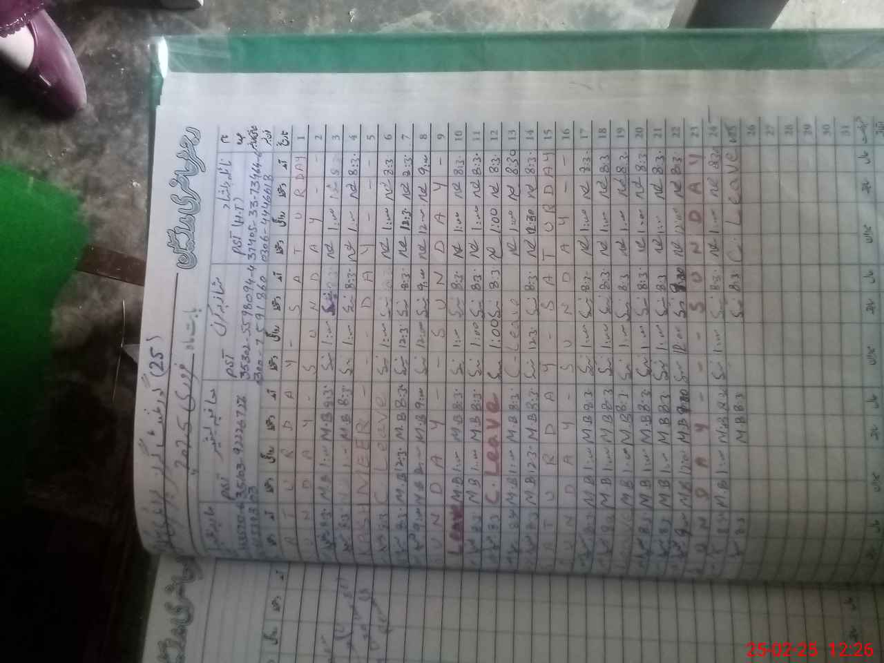 | Leave | Duty | Absent | Maternity | Medical | Ex- Pak |