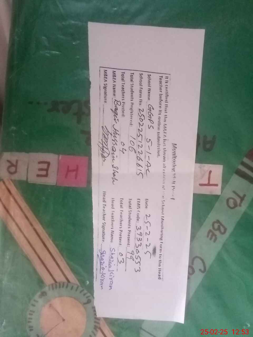 | Attendance Register | Head Teacher | MEA with School | Visit Proof |