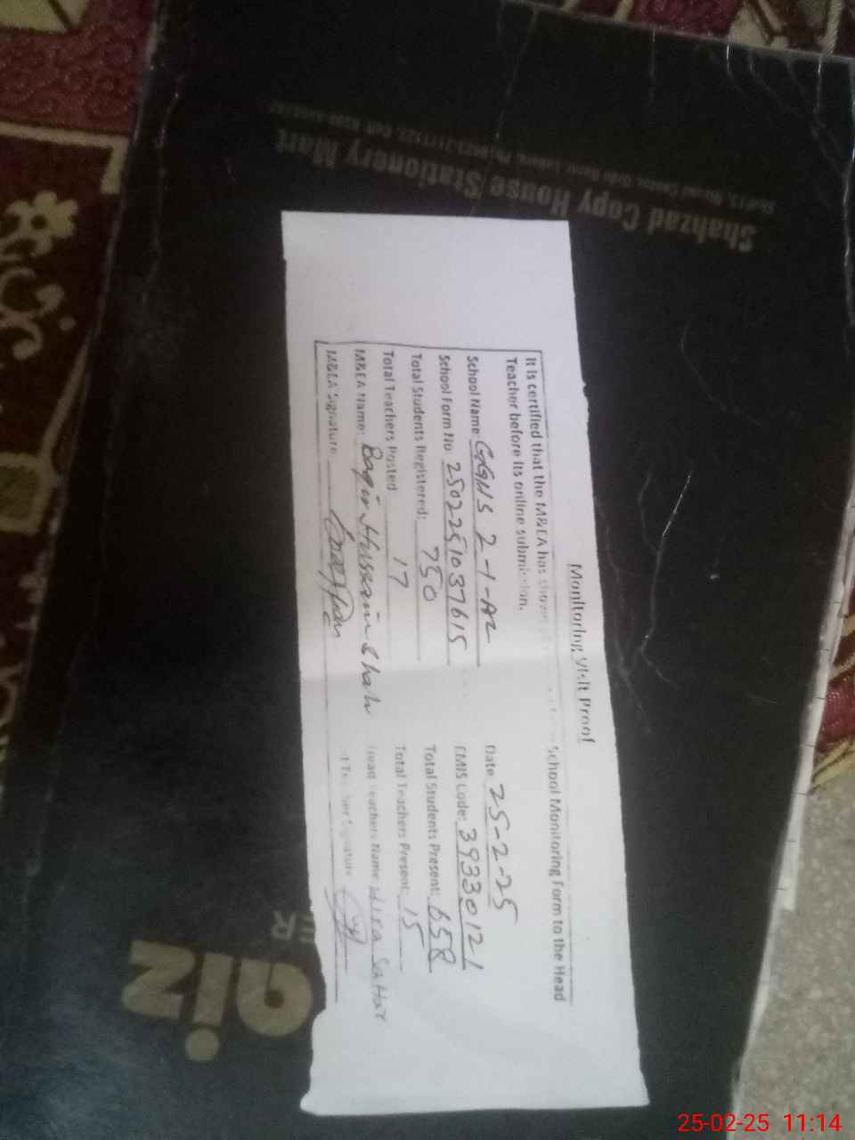 | Attendance Register | Head Teacher | MEA with School | Visit Proof |