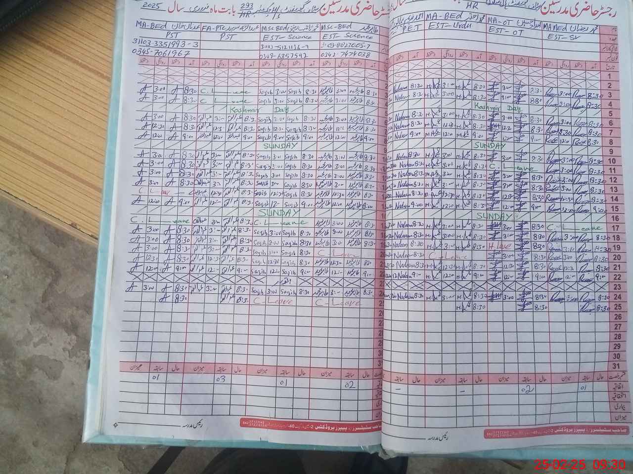 | CNIC | Full Name | Designation | R/C | Absence During Last Calender Month |