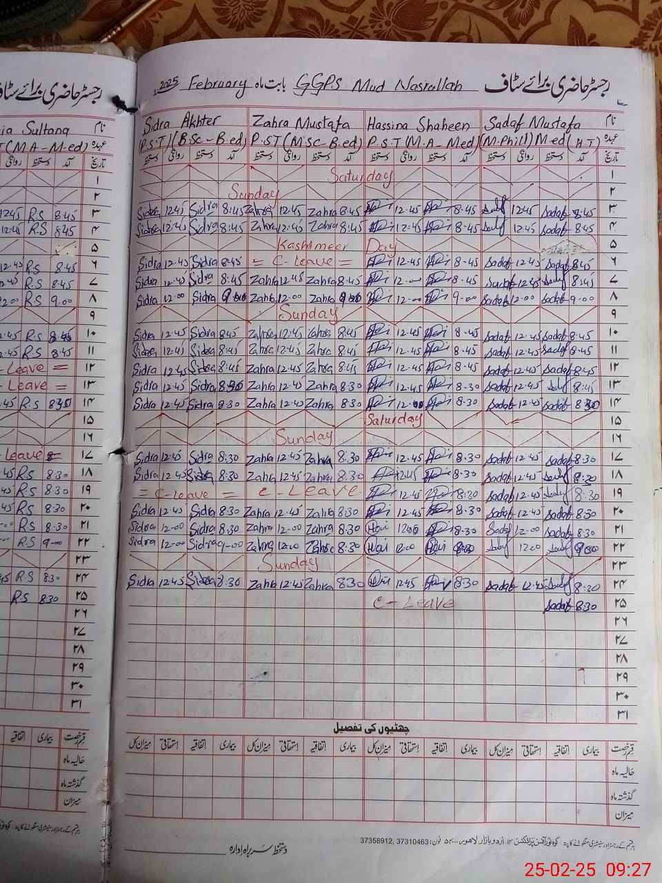 | 31**** | Za**** Mu**** | 2 | 2 | 14 | 0 | 0 | 0 | 0 | 0 | 0 | 2 | Absent (Un-Authorized) | |