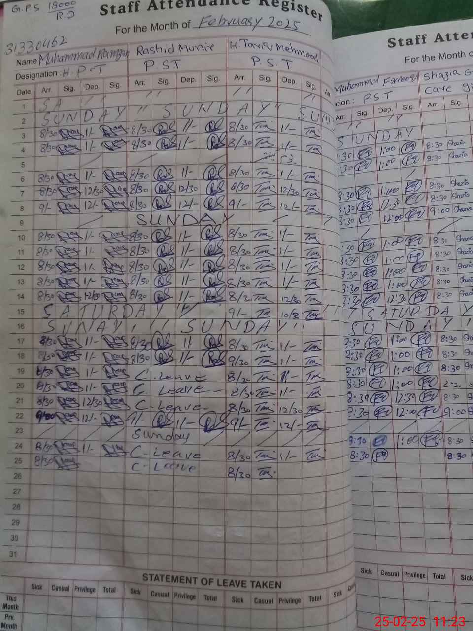 | Name: MU**** RA**** Designation: (School Headmaster's/Headmistress's) PST Phone/Cell Number: 03**** |