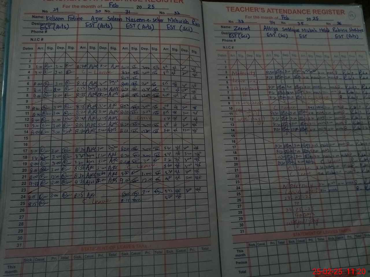 | Leave | Duty | Absent | Maternity | Medical | Ex- Pak |
