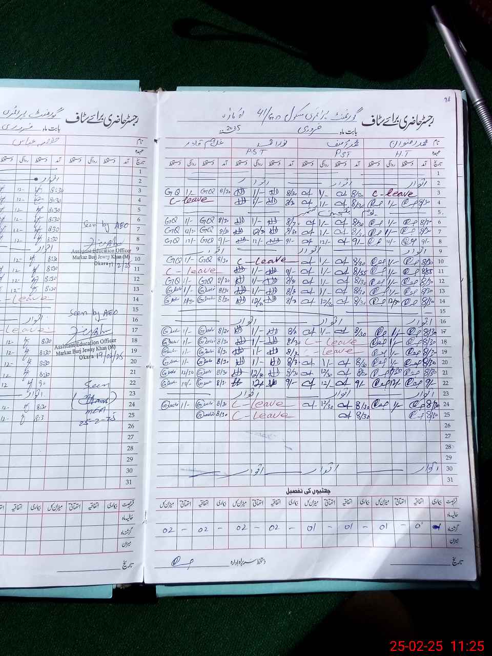 | Leave | Duty | Absent | Maternity | Medical | Ex- Pak |