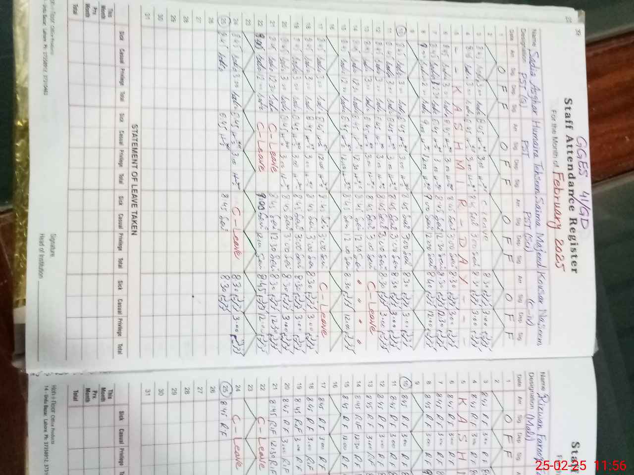 | Leave | Duty | Absent | Maternity | Medical | Ex- Pak |