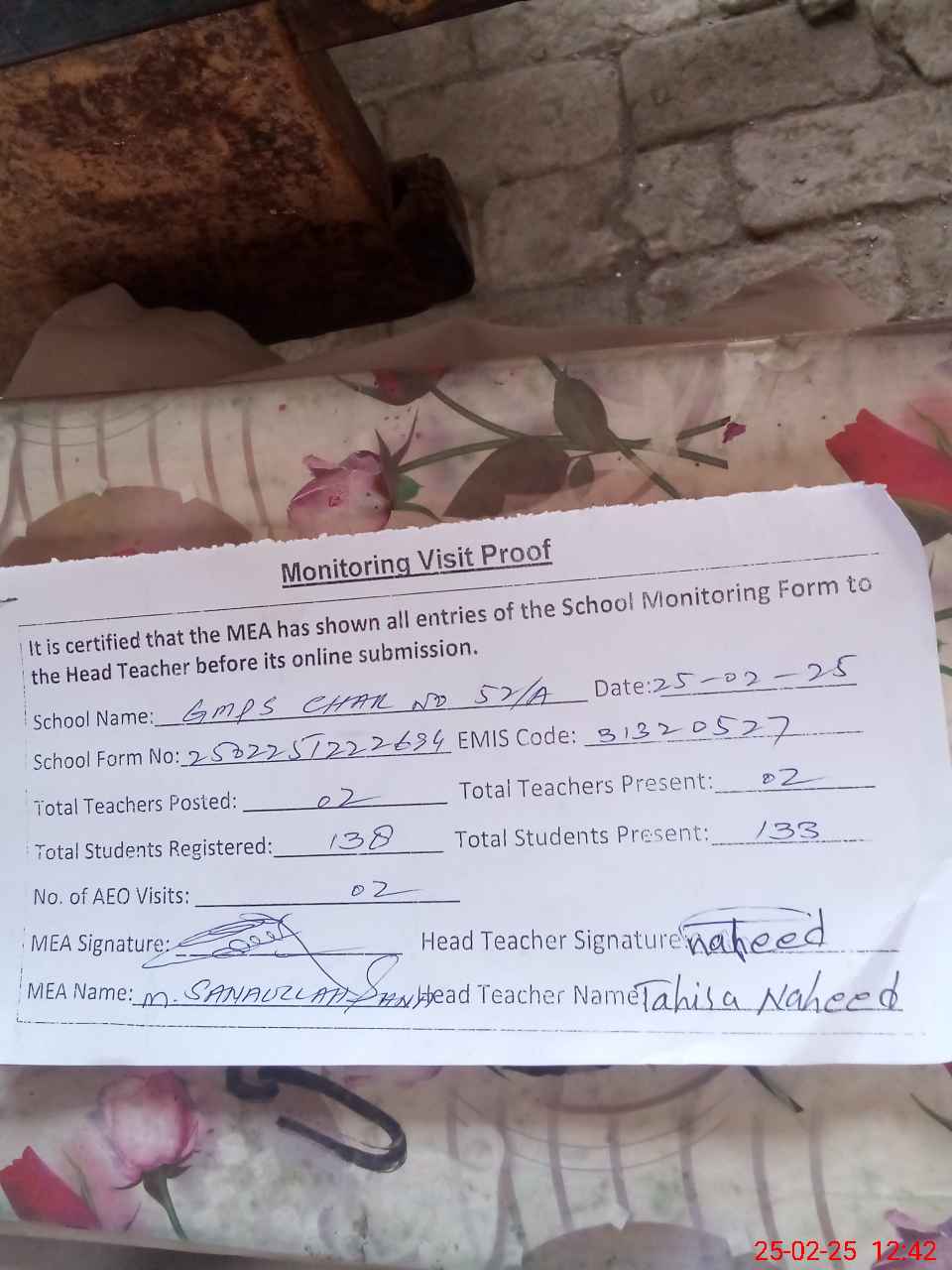 | EMIS Code: 31320527 | Name of School: GMPS CHAK NO.52/A | |||