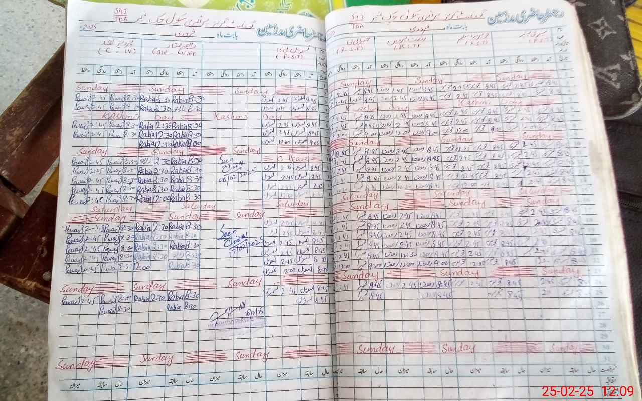 | CNIC | Full Name | Designation | R/C | Absence During Last Calender Month |