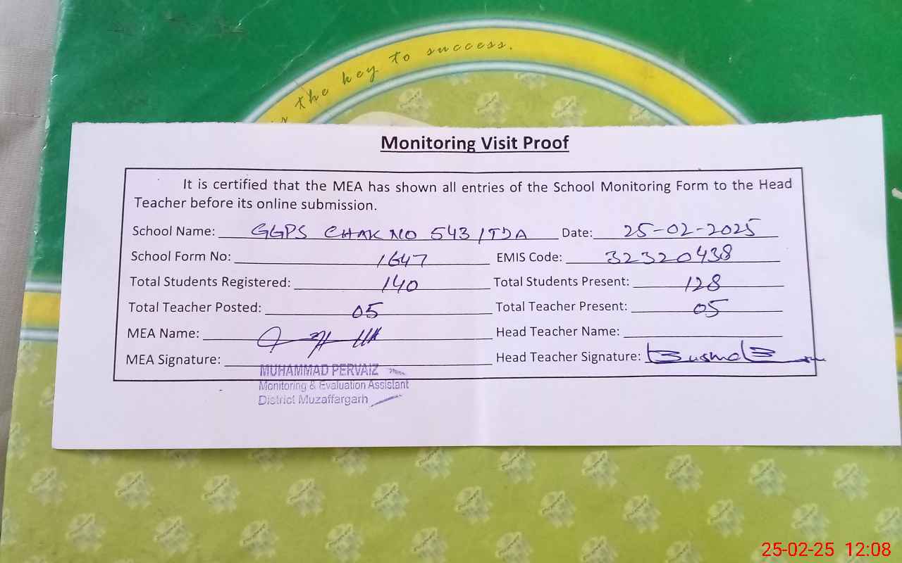 | EMIS Code: 32320438 | Name of School: GGPS CHAK NO. 543 TDA | |||