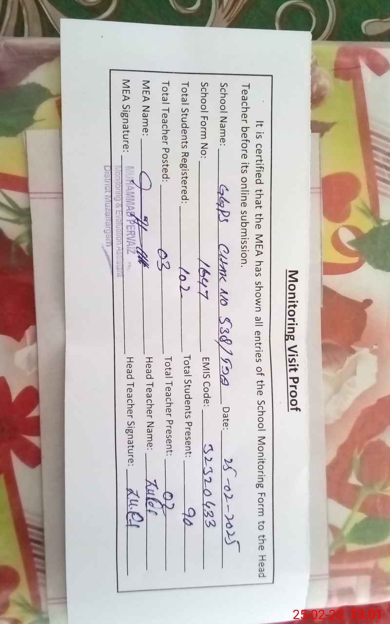 | EMIS Code: 32320433 | Name of School: GGPS CHAK NO. 538 TDA | |||