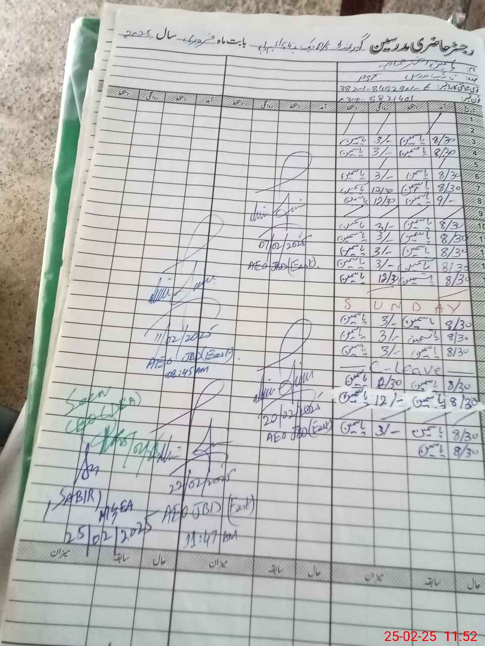 | CNIC | Full Name | Designation | R/C | Absence during last cal. month |